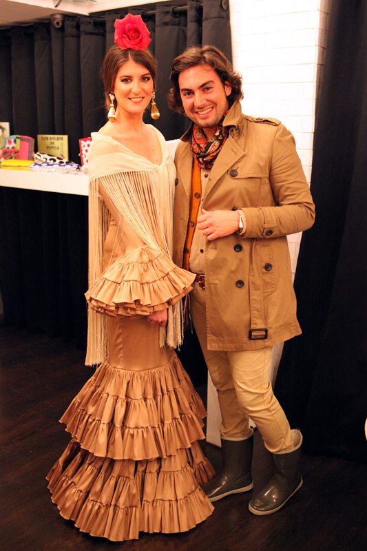 Ambos mantoncillos están combinados con un traje beig, pero con complementos muy distintos.